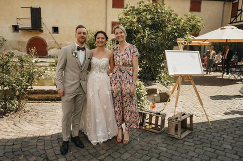 Bereits nach den ersten Minuten des Gesprächs war klar, das ist SIE. Auch wenn das erste Meeting digital war, hat uns Julia sofort mit ihrer offenen ehrlichen und stets sehr professionellen Art überzeugt. Es ist äusserst selten, dass man einer wildfremden Person begegnet und sie nach nur wenigen Minuten bereits ins Herz geschlossen hat. Julia vereint ein schier unfassbares Gespür für Menschen mit einer unvergleichlichen Gabe des Zuhörens und Erzählens. Die freie Trauung hat uns sprachlos gestimmt. Sie hat uns mitgenommen auf eine emotionale Achterbahnfahrt - natürlich im ausdrücklich positiven Sinne. Und sie hat uns mit ihrer Rede das Gefühl gegeben, als würde vor uns eine Freundin aus Kindheitstagen stehen, die unsere gesamte Liebesgeschichte hautnah miterlebt hat. Genau das ist es auch was Julia so einzigartig macht. Man kann gar nicht anders als sie einzuweihen in die eigenen Geheimnisse, verrät ihr auch mal ein pikantes Detail oder die eine oder andere peinliche Story. Genau so wie man es mit einer sehr guten Freundin eben auch tun würde. Wie Julia diese unendlich vielen Informationen dann in eine Rede packt, die so individuell, so treffend und den Geschmack von A-Z perfekt trifft, ist eine Gabe über die wohl nicht viele Menschen verfügen.